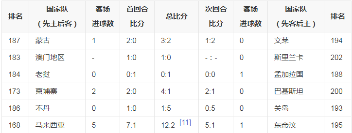 第一轮是由亚洲国际足联排名最低的12支球队(第35-46名)参加,这12支球队大家抽签分成6组两两主客对决,赢得人就能够进入下一阶段的40强赛,不过也都是瞎忙和啦,在大佬的眼中都是大礼包。比赛结果如下: